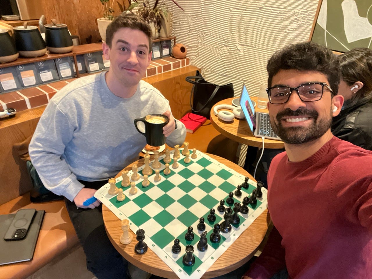 Me dijo que justo había creado su club, Chesspresso, con la idea es enseñar ajedrez a todas las edades y niveles, apoyando a cafeterías locales de Vancouver. También me dijo que podía ayudarme con mis objetivos, fueran los que fueran. En nuestra primera clase, Max me estaba esperando en Small Victory Bakery, con el ajedrez ya preparado en el centro de la mesa. Me senté con esa ilusión tan de antes de rasgar papel de regalo.