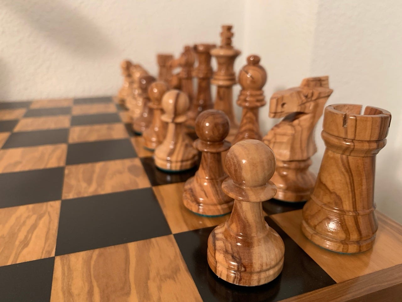 Según la terminamos, sin saber muy bien cómo, me puse a buscar mi ajedrez. Y lo encontré. Y lo compré; como para no enamorarme de un ajedrez de madera de olivo.